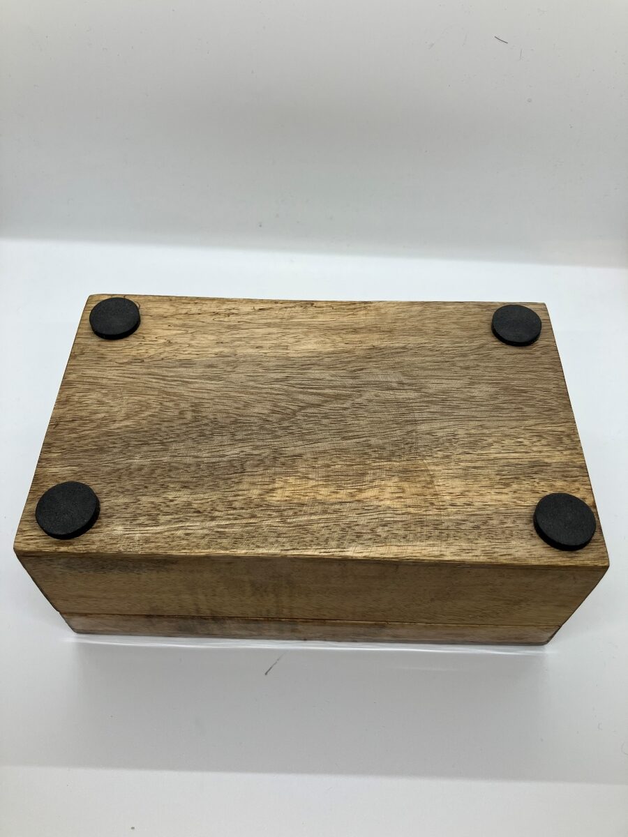 Perfect for storing small treasures, jewellery, keepsakes, teabags and many other items, this box combines both form and function. The smooth, hinged lid opens easily, allowing you to keep your items organized and secure. Whether displayed on a countertop, shelf, or table, it’s a delightful accent that adds warmth and charm.